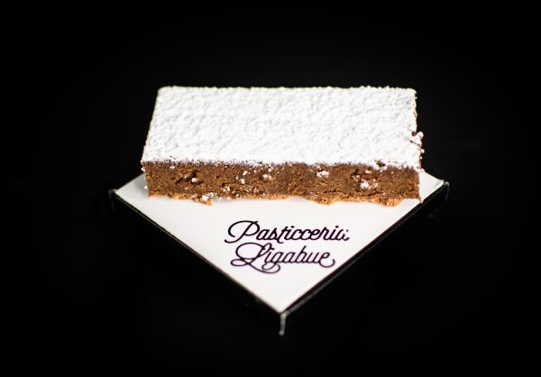 Ingredienti: burro, zucchero, uova, farina 00, cioccolato fondente 55%, liquore alla vaniglia, zucchero a velo.